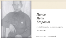 Панов Иван Егорович, 1915г.р. Место рождения Красноярский край, Кежемский район, д.Паново. До войны жил в Красноярском крае, ЭНО, Тунгусо-Чунский район, ф.Угояна. Призван Тунгусо-Чунским РВК в 1941году. Ст.лейтенант. Зам командира штрафной роты. В/ч 179 арм. штраф. рота 496 сп 148 сд. Убит в разведке 9.12.1942 года. Похоронен Орловская область, Ливенский район, д.Коротыш. Жена Панова Елена Андреяновна.