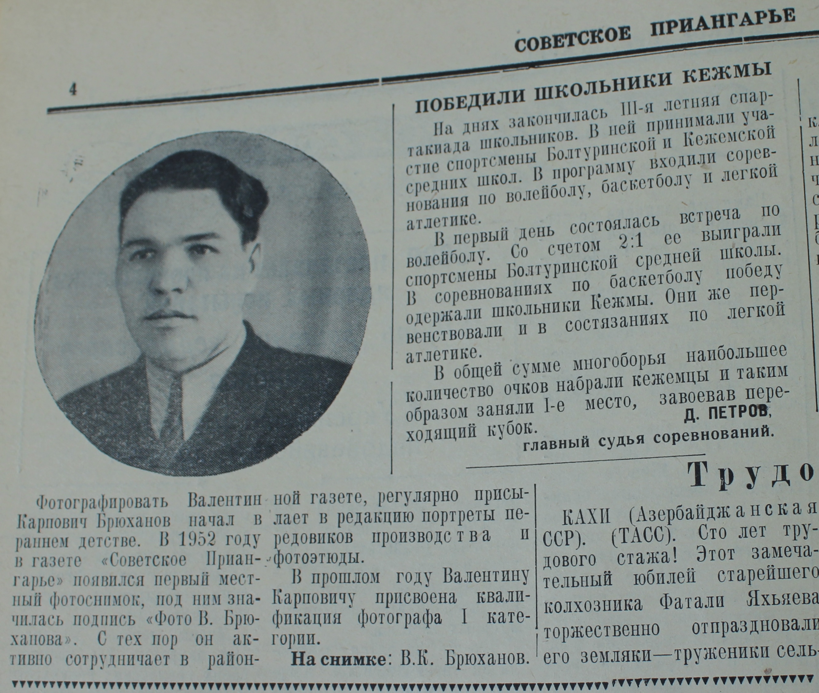 18 июля. Валентин Карпович Брюханов. Победили школьники Кежмы.