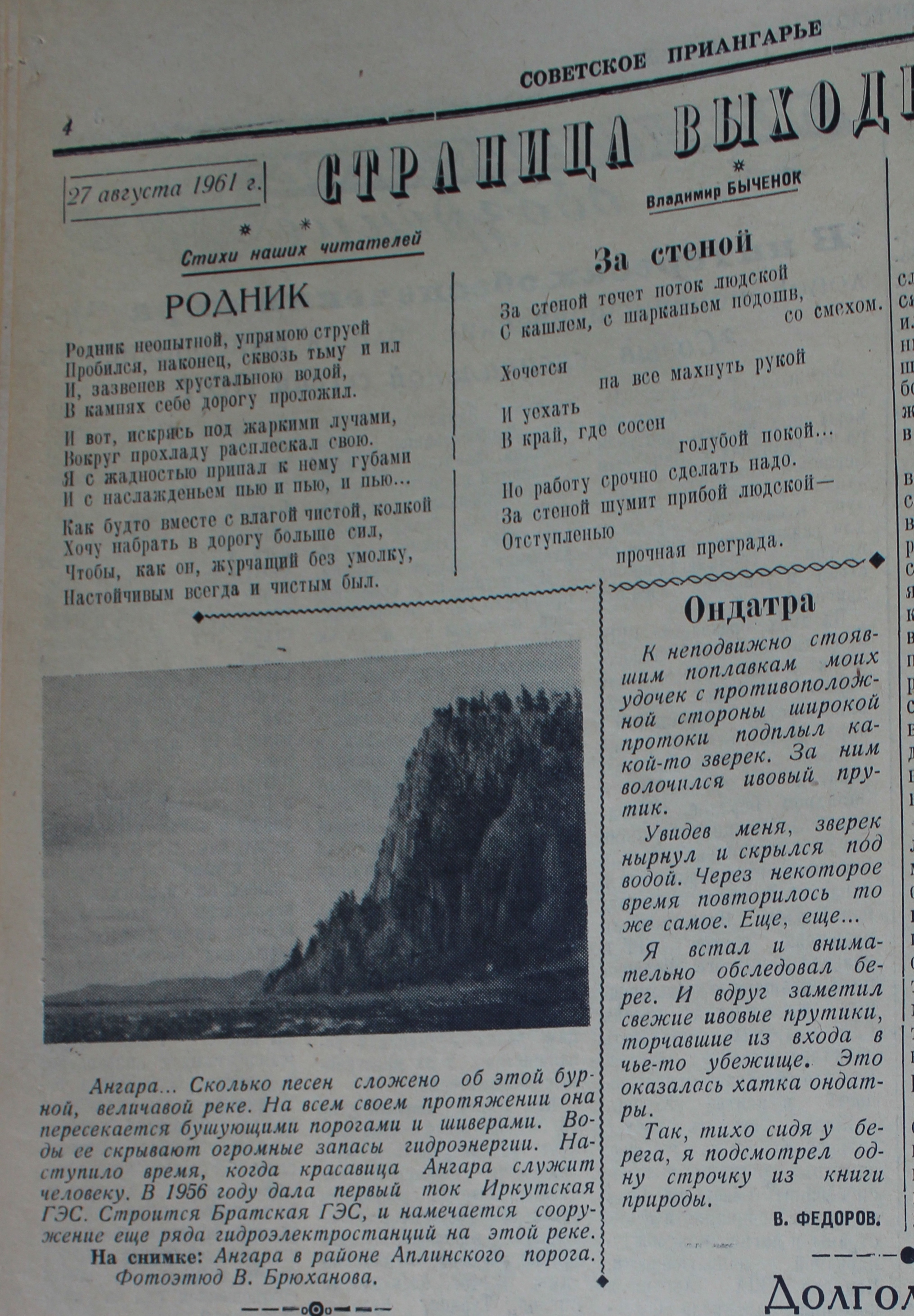 27 августа. Стихи читателей. Ангара. Ондатра.