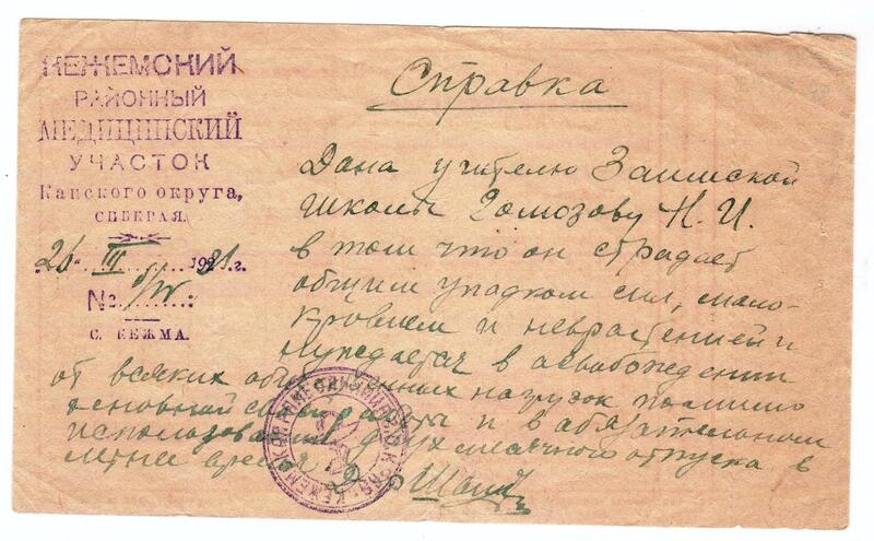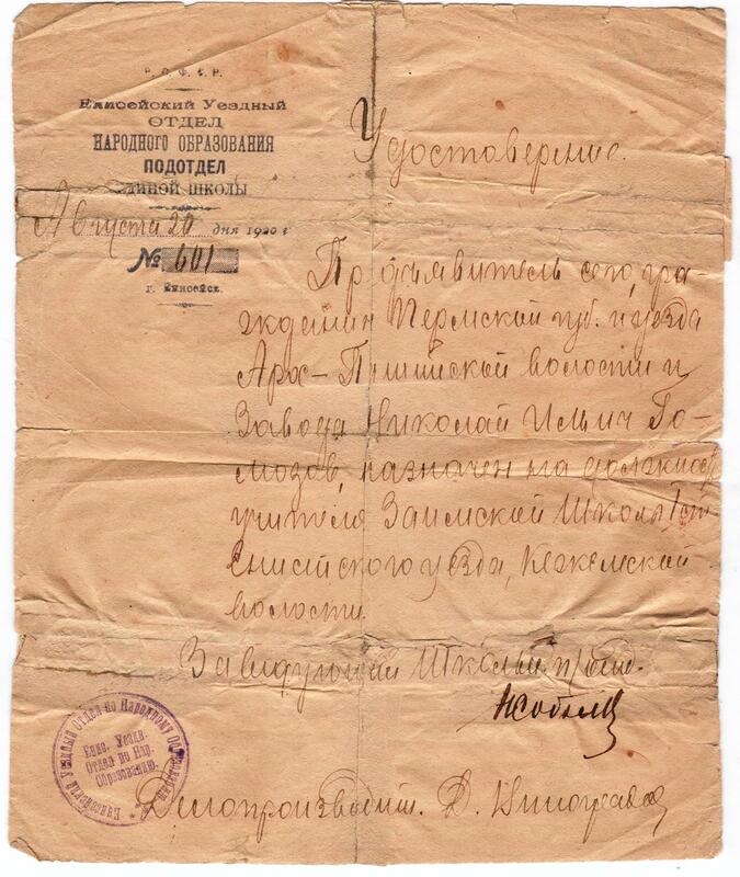 Автобиография учительницы Кежемского района 20 - 50 годов 20 века.
